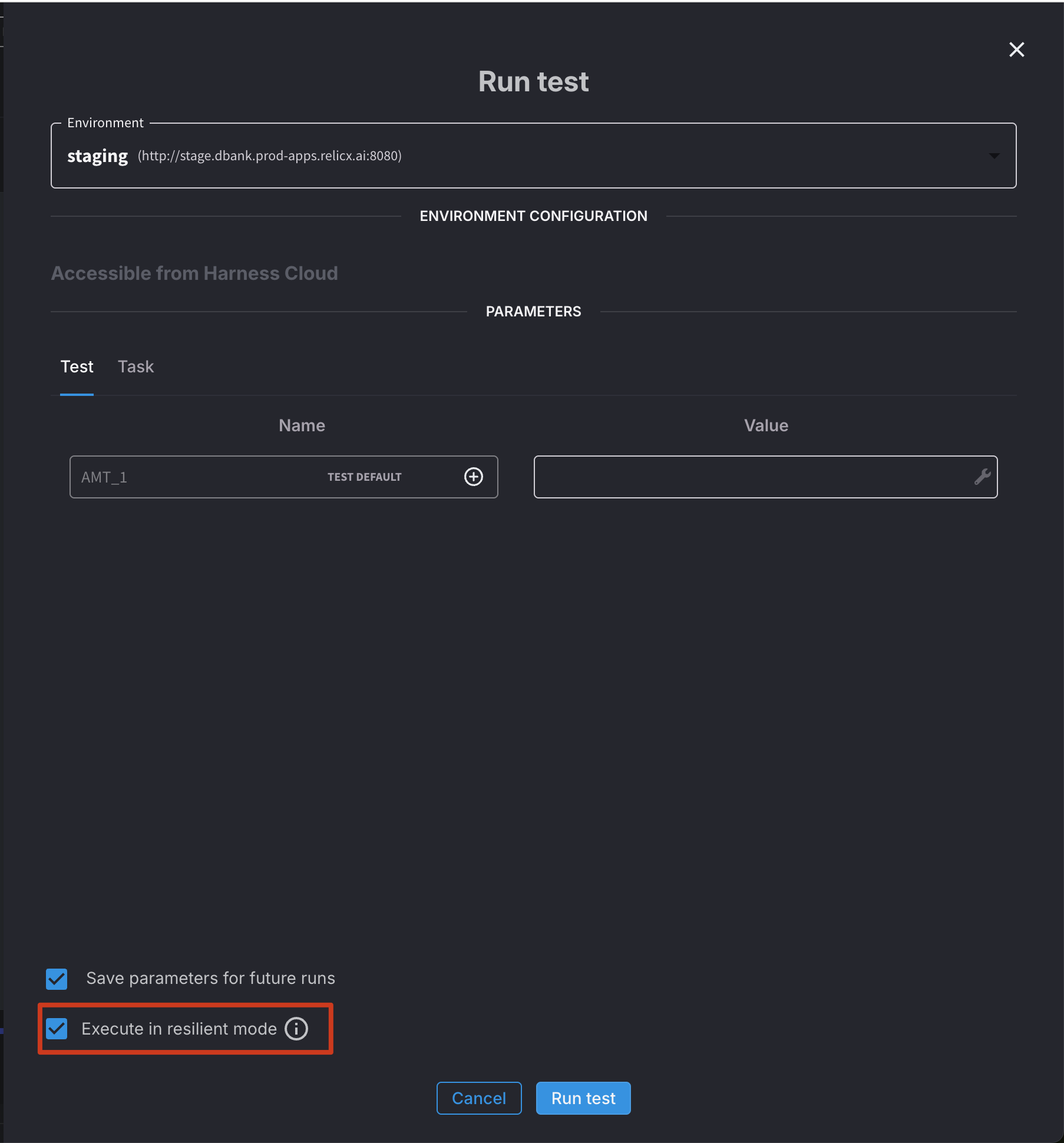 Resilient Mode is designed to maximize the reliability of test execution, particularly in environments with variable performance or when testing complex applications.