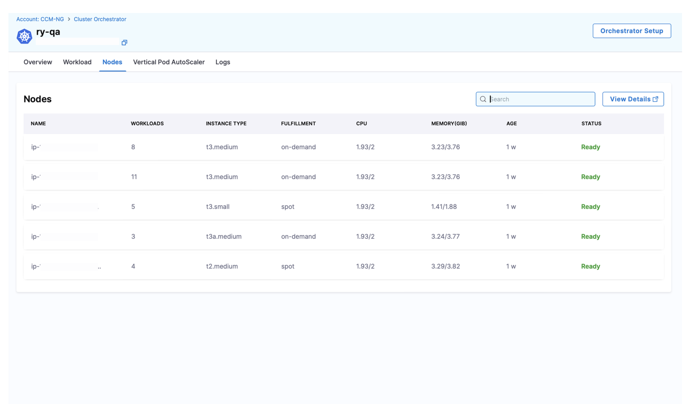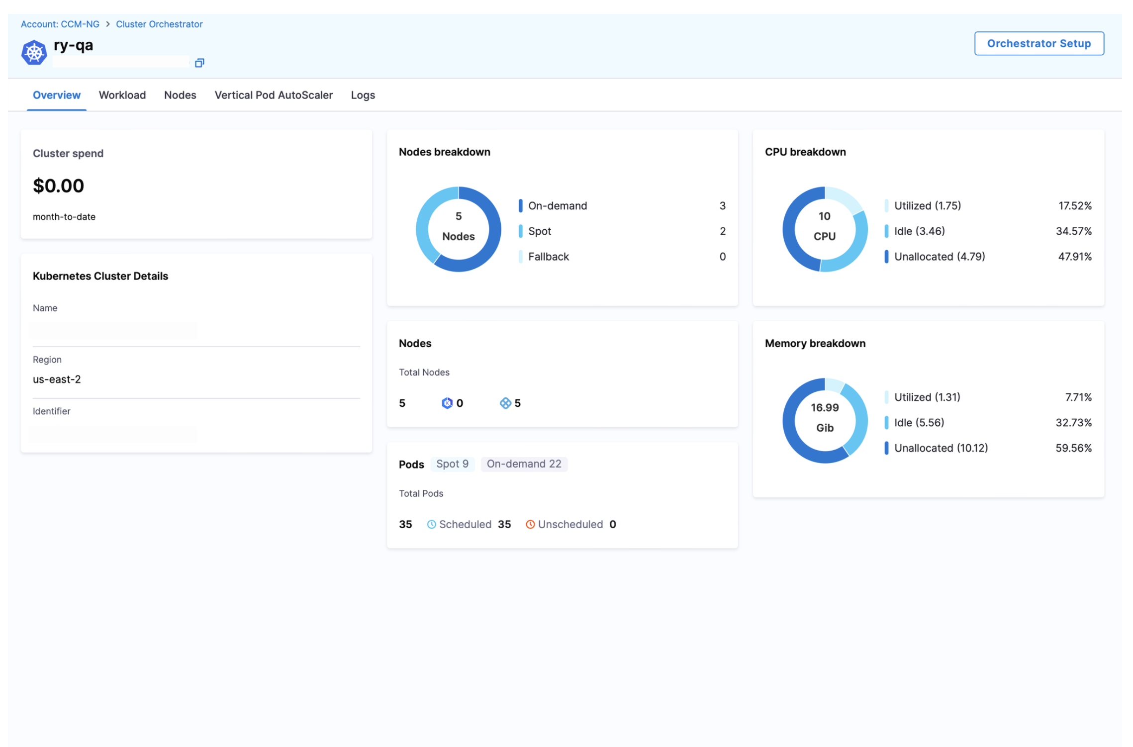 - Nodes Breakdown: Visualize your node distribution by fulfillment method (spot vs. on-demand)