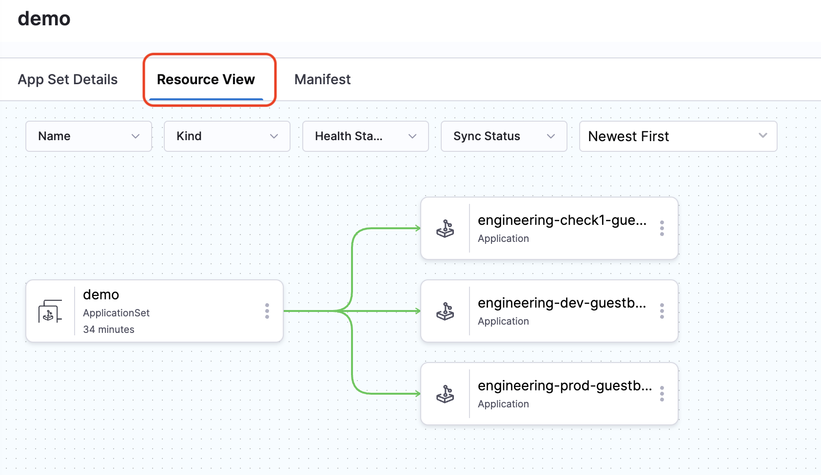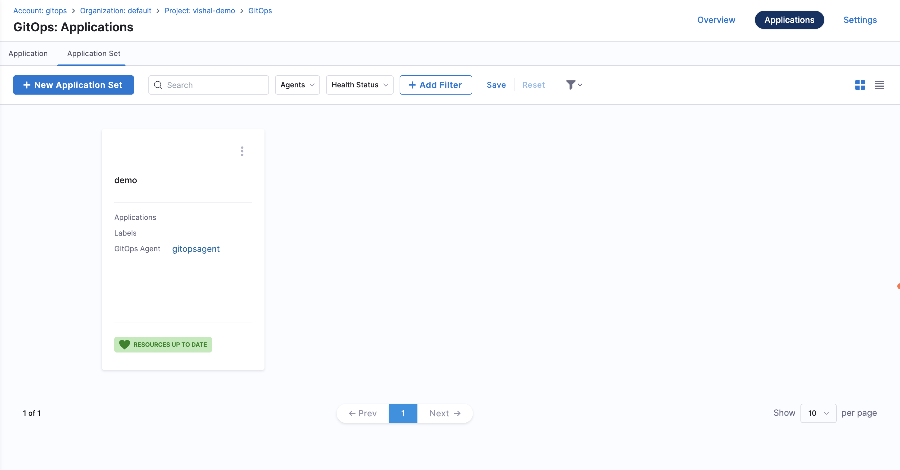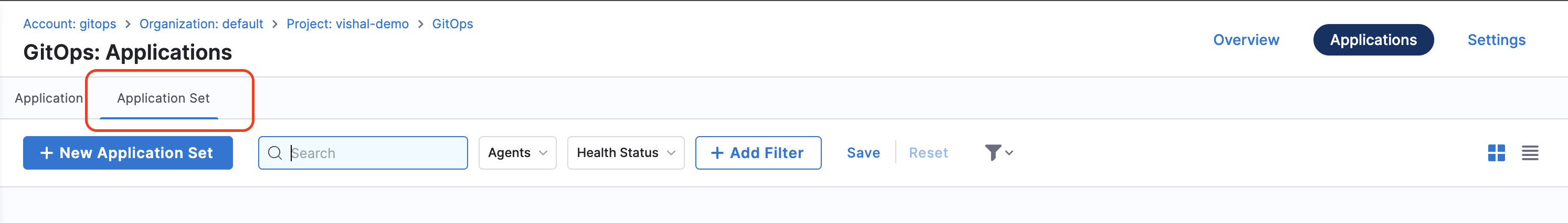 You'll see a list of all ApplicationSets in your project.