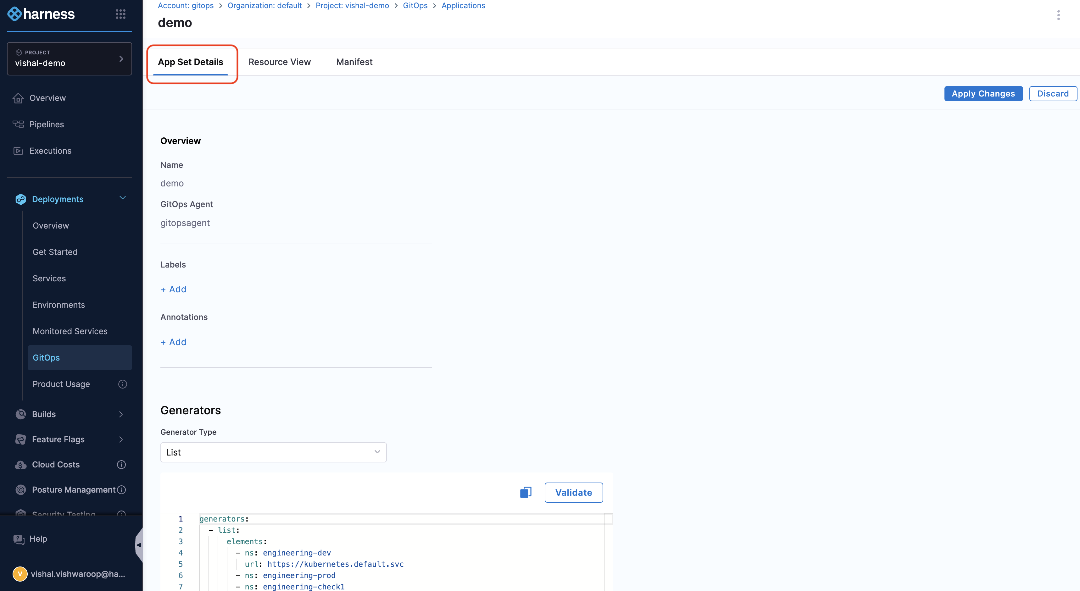 Harness provides two ways to work with GitOps ApplicationSets: