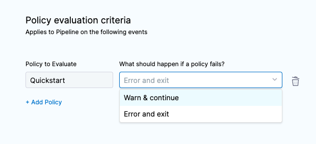 • The policy is evaluated whenever the pipeline reaches the Policy step.