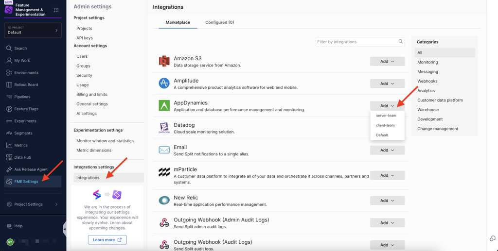 After creating an Administrator role and a user within that role in Splunk AppDynamics, configure the AppDynamics integration in Harness FME.