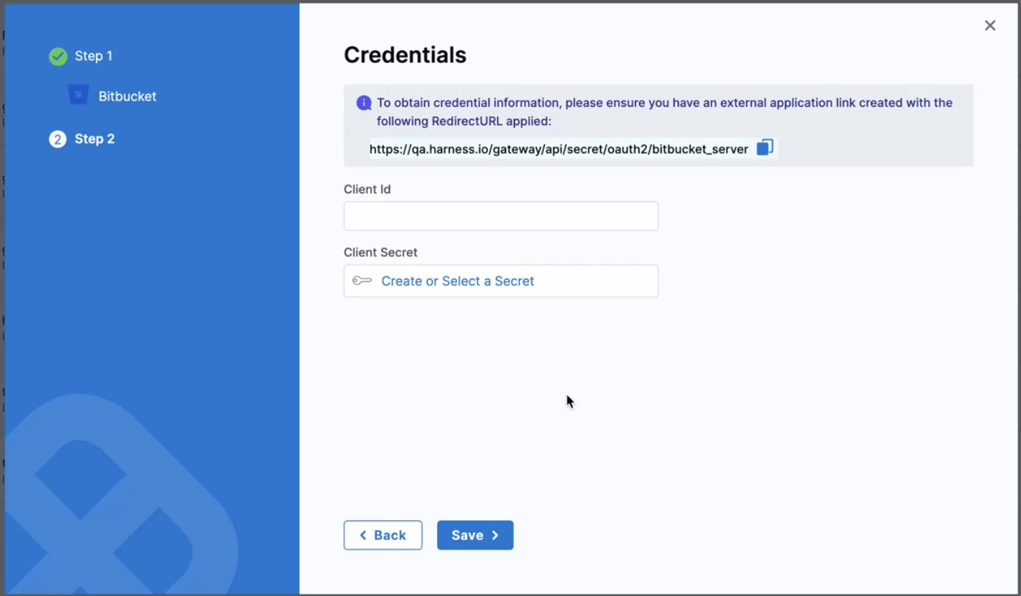 Navigate back to Application Links page, click on the settings for the application you created, then click on View Credentials. Copy the Client ID and the Client Secret, and use these to configure the provider on the Harness Credentials page. Save it.