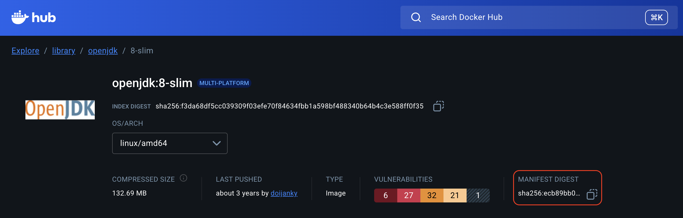 • org.opencontainers.image.base.digest: The manifest digest (SHA256) of the base image.