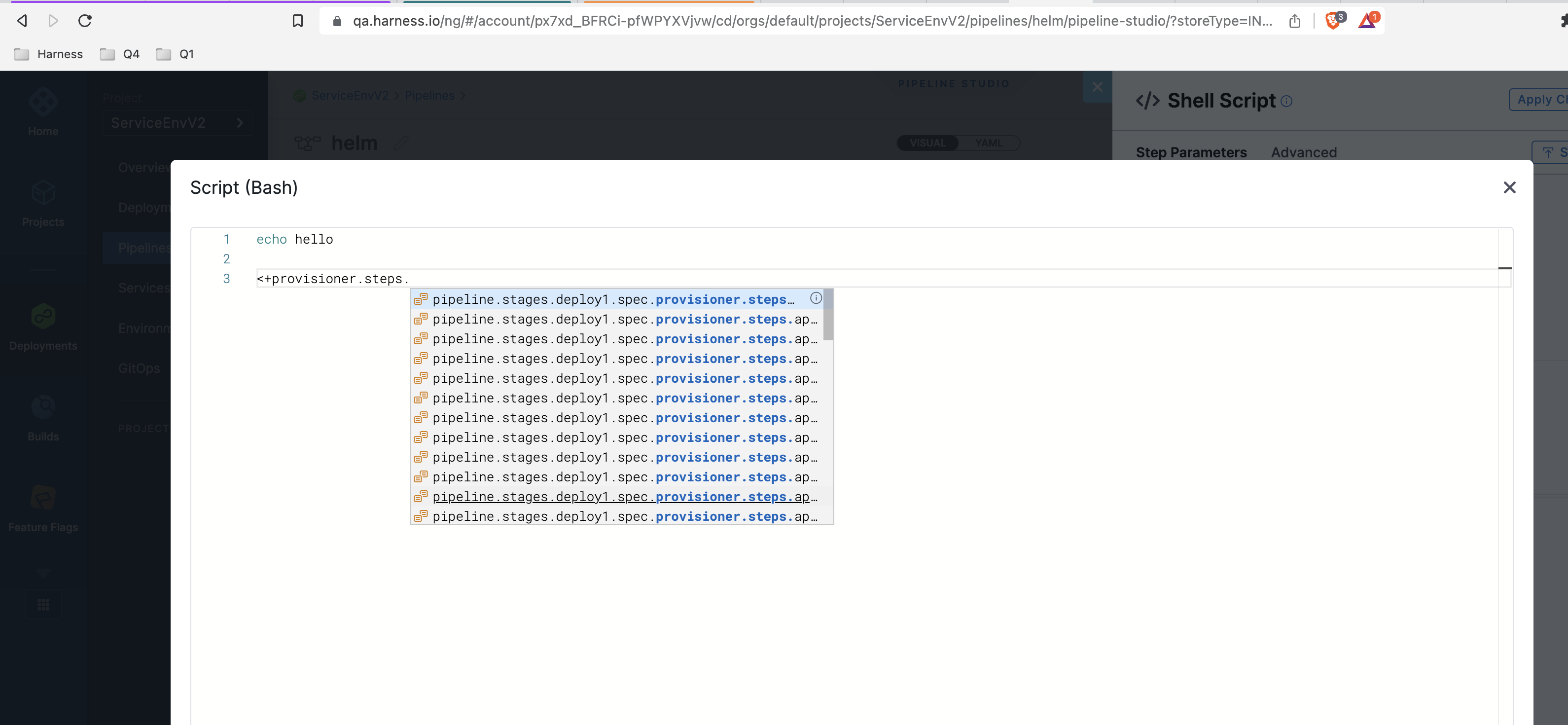 \r\n/\n). Multi-line strings set via$env:varNamein PowerShell were flattened to a single line when referenced downstream (for example, in Approval step messages), while the equivalent Bash step usingexportpreserved newlines correctly. The delegate's output variable capture mechanism for PowerShell now retains newline characters, bringing behavior in line with Bash Shell Script steps. (CDS-118883, ZD-104328) - Fixed an issue where the Azure Create ARM Resource provisioning step failed with an
