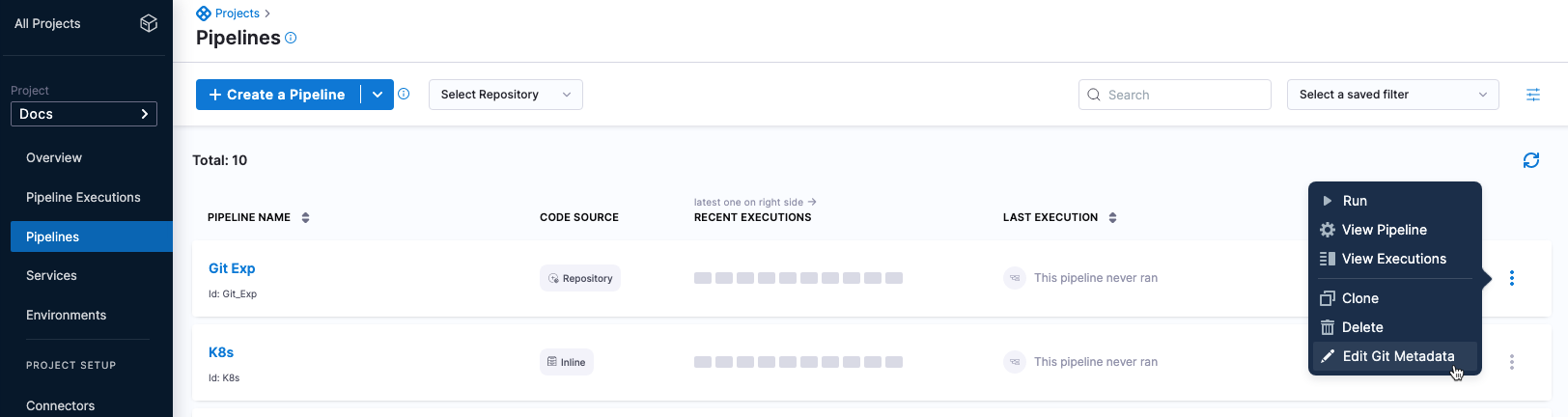 - Fixed an issue where the Triggered by column in the pipeline executions list displayed a generic