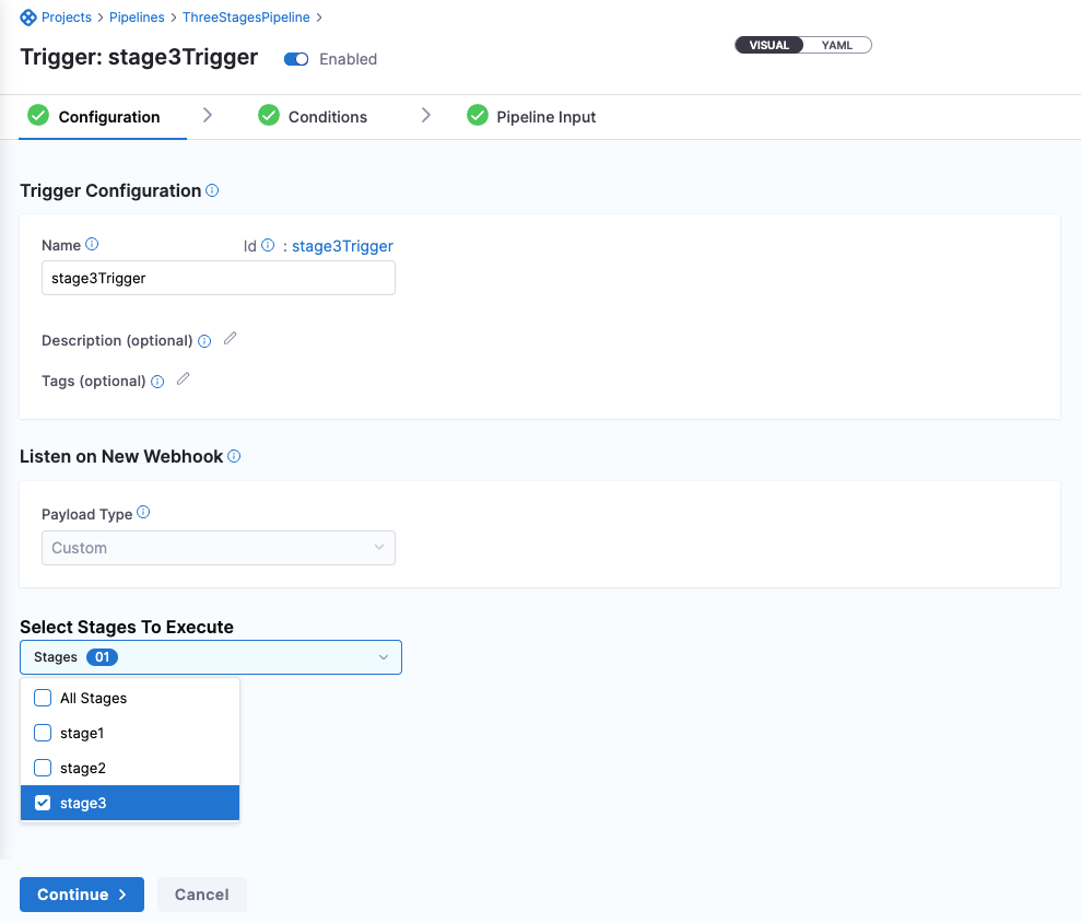 Webhook(<id>)label instead of the configured trigger name after adding a CI stage to an existing CD pipeline. The trigger name now displays consistently regardless of the stage types present in the pipeline. (PIPE-31572, ZD-100883) - Fixed an issue where